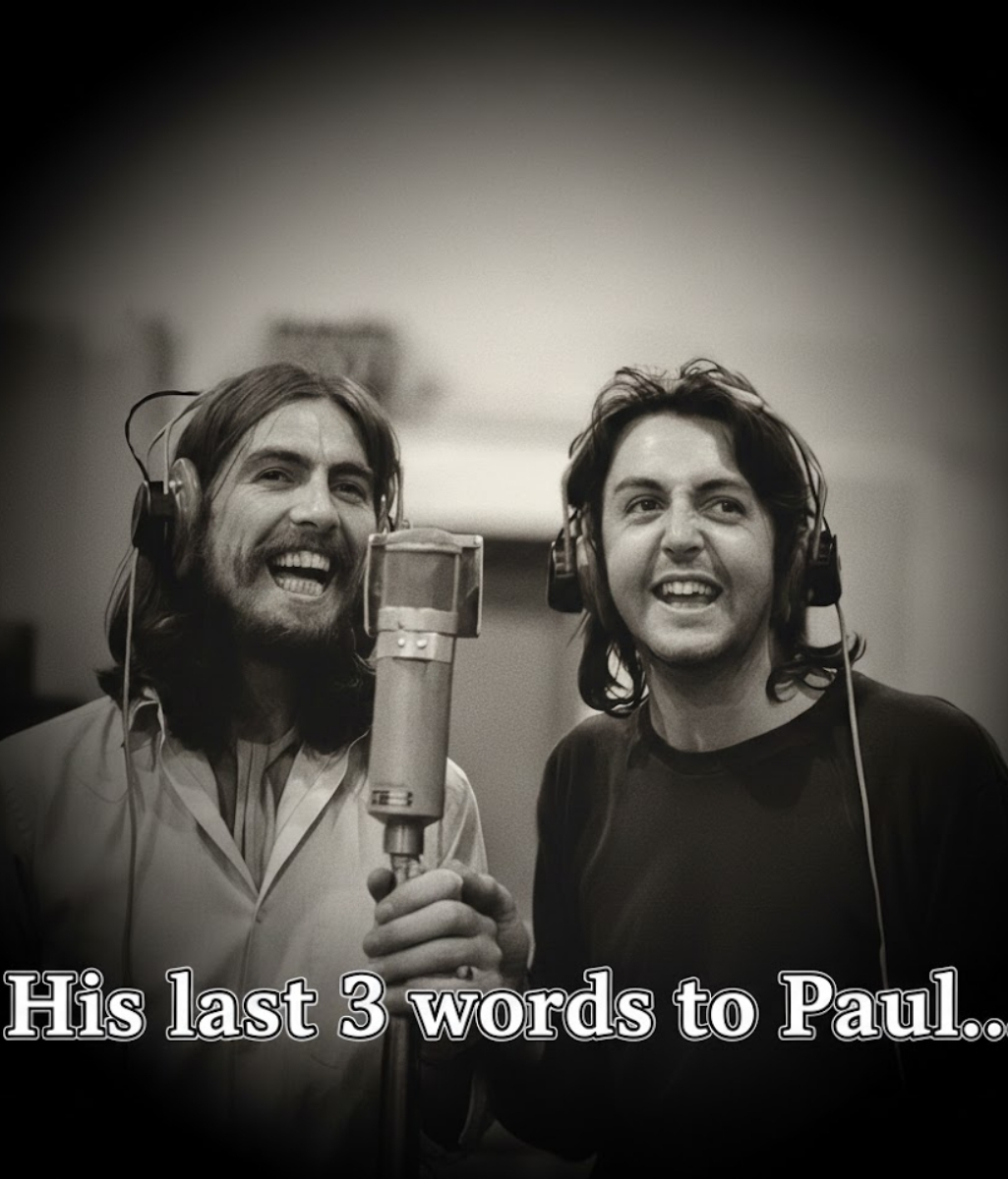 George Harrison, frail but serene, reached for Paul McCartney’s hand. His voice was little more than a whisper, but the words were clear, meant for Paul alone — three words never caught on camera, never meant for the world, until now.
