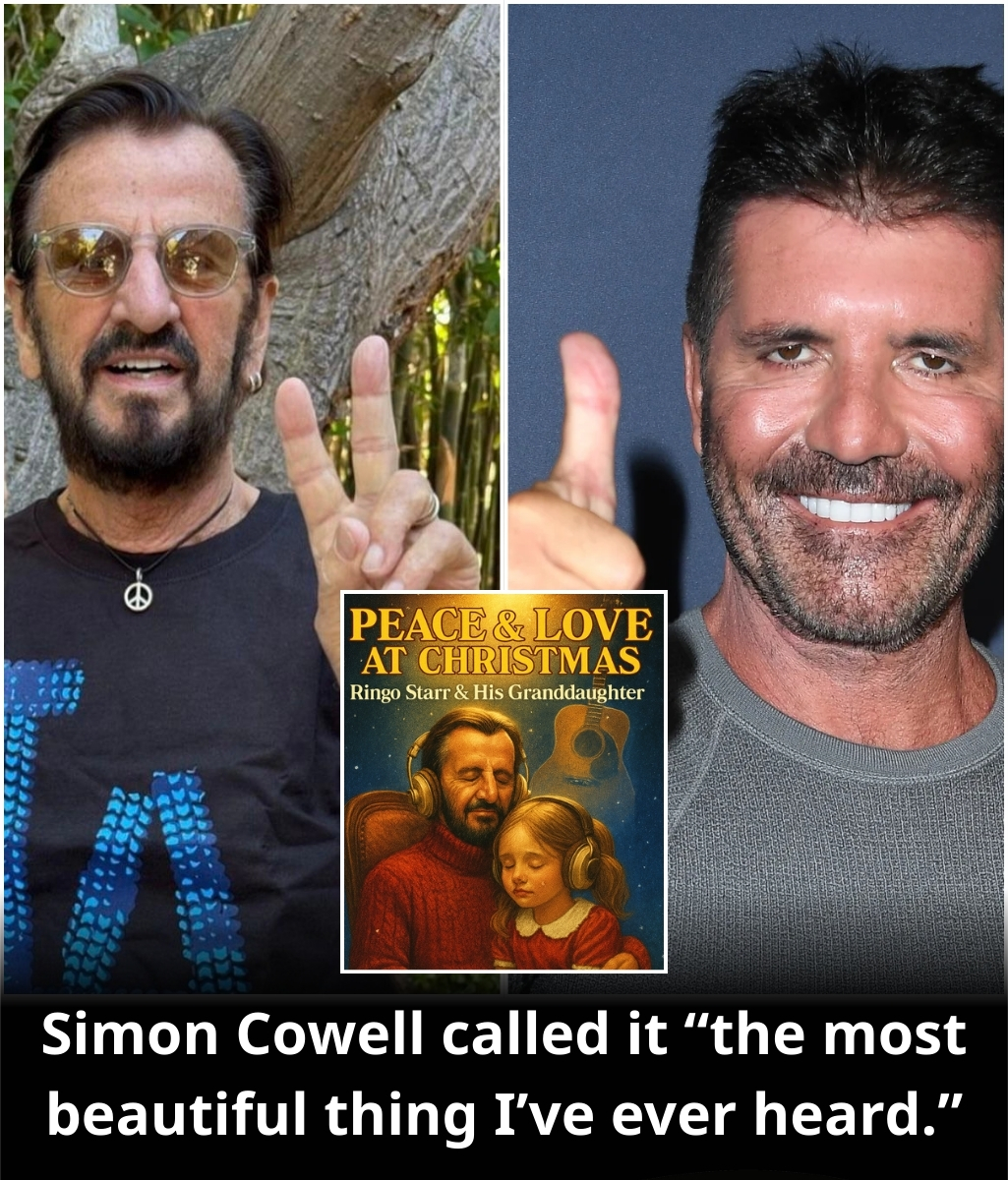 In what’s being called **“the most beautiful thing I’ve ever heard”** by music mogul **Simon Cowell**, **Ringo Starr** has recorded a heartfelt Christmas duet with his **9-year-old granddaughter**, **Luna** — and in a moment that left producers in tears, a long-lost guitar track by **George Harrison** emerges halfway through the song like a gift from beyond.