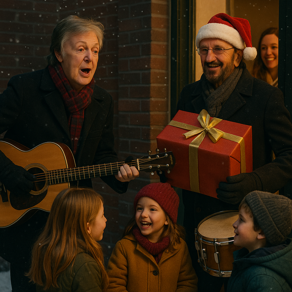 On Christmas night 2025, while most of the world settled into cozy celebrations, Paul McCartney and Ringo Starr quietly took to the snowy streets of Liverpool for a mission close to their hearts — bringing music, warmth, and joy directly to families spending the holiday in temporary shelters.