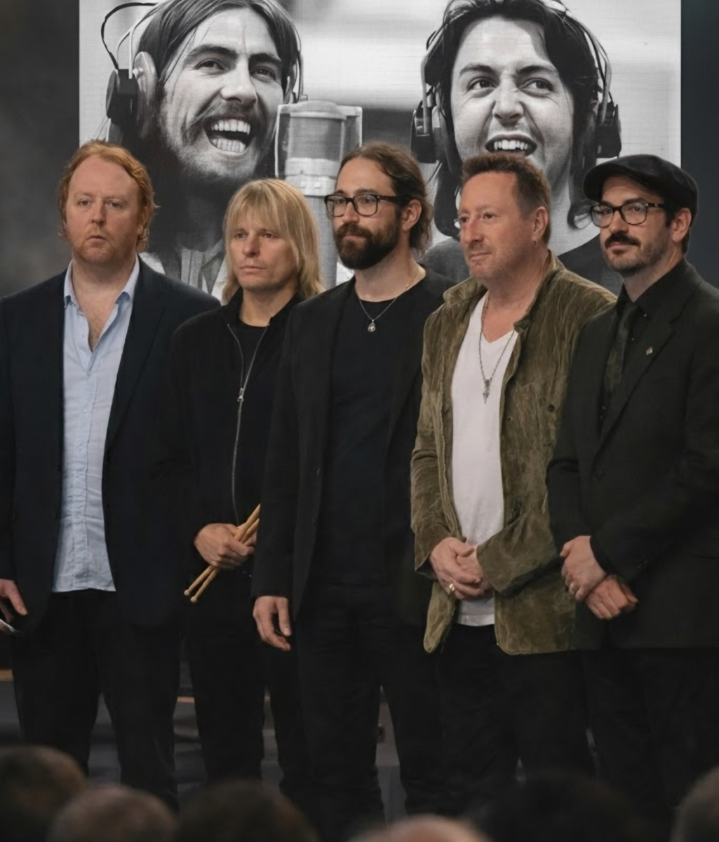 **Julian’s** voice entered, adding a layer of weathered warmth, a survivor’s steadiness. **Sean’s** harmony wove around it, airy and mystical, turning the melody into a meditation. **James McCartney** added a clear, pure tenor line, a thread of innate melodic hope that felt like a birthright. And beneath it all, **Zak** did not drum. He **pulsed.** With brushes on a snare, he provided the heartbeat—the same intuitive, compassionate timekeeping that had once supported all their fathers.