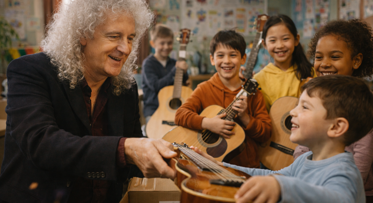 In early 2026, Brian May quietly visited a local orphanage, carrying not fame or spectacle, but something far more powerful: guitars, time, and genuine care.