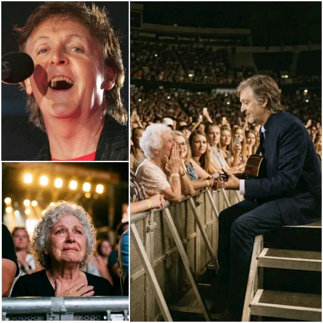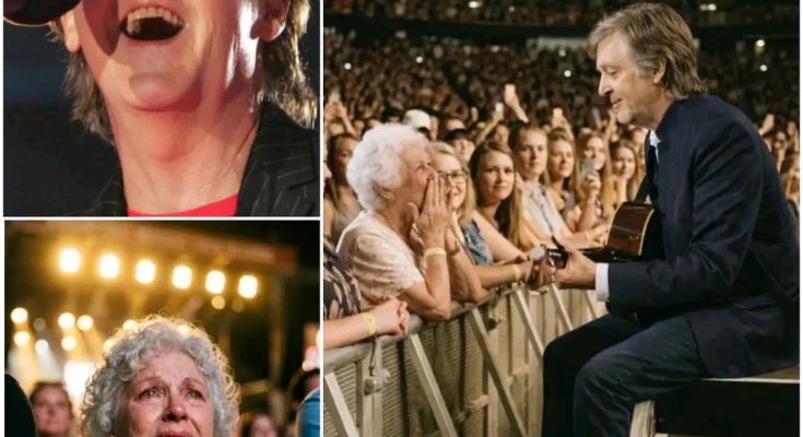 The roar of the stadium — tens of thousands of voices, phones raised, lights flashing — slowly softened. Not because the song ended, but because Paul McCartney noticed someone.