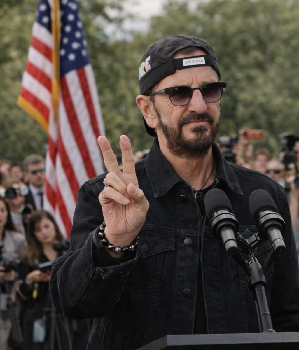 **WASHINGTON, D.C.** — In a moment that stood in stark contrast to the city’s usual soundtrack of political rhetoric and protest, a different kind of voice carried across the National Mall today. **Ringo Starr**, the legendary Beatles drummer and lifelong symbol of peace and love, stepped to a simple microphone, not on a concert stage, but on a platform overlooking the reflecting pool, the Washington Monument at his back.