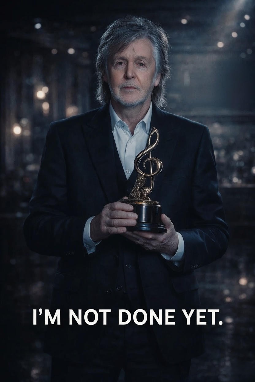 Paul McCartney walked off that stage not as a monument, but as a man in motion. He had taken their tribute and handed it back to them, reframed: the greatest achievement is not the legacy you leave behind, but the work you are still brave enough to begin.