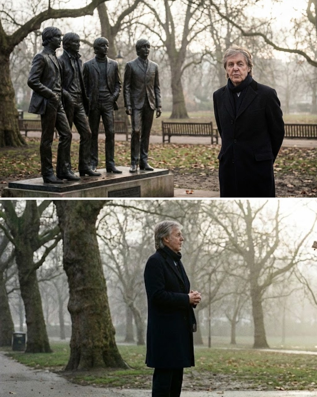 He left no explanation. He needed none. The image says everything: the last Beatle, standing before the forever Beatles. The silence wasn’t empty; it was **full of a lifetime.** And in that refusal to perform grief or deliver a soundbite, Paul McCartney gave the world the most honest glimpse into his heart he possibly could—a heart still in quiet, constant conversation with the ghosts who made it beat.
