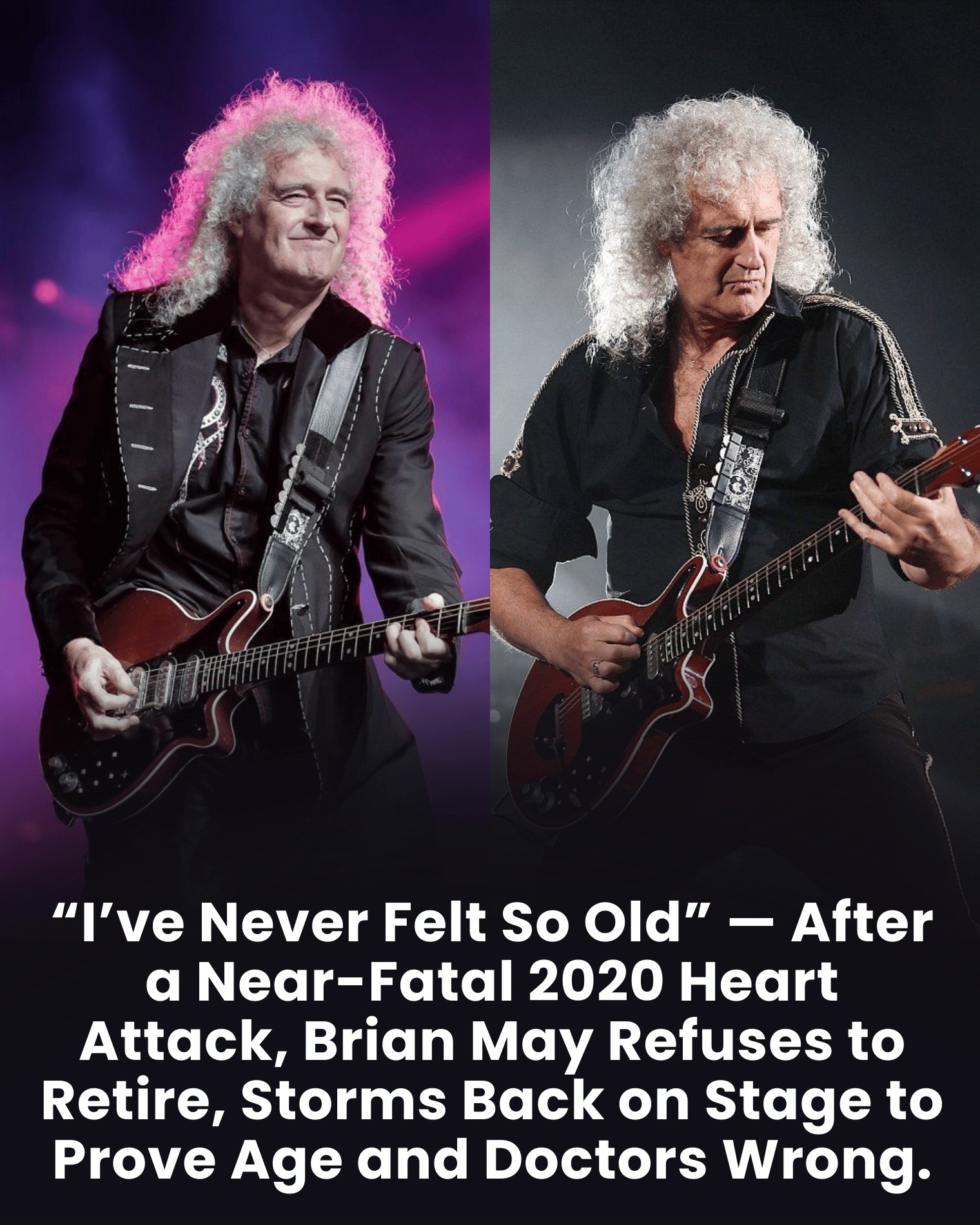 Brian May refused to let a heart attack become the period at the end of his sentence. Instead, he used it as a **restart**, proving that the most powerful solo he could ever play was the one that shouted, with every fiber of his healed heart, that he was far from finished. In defying doctors and age, he didn’t just save his own life—he played a riff that continues to inspire millions to turn their own survival into their greatest act of defiance.