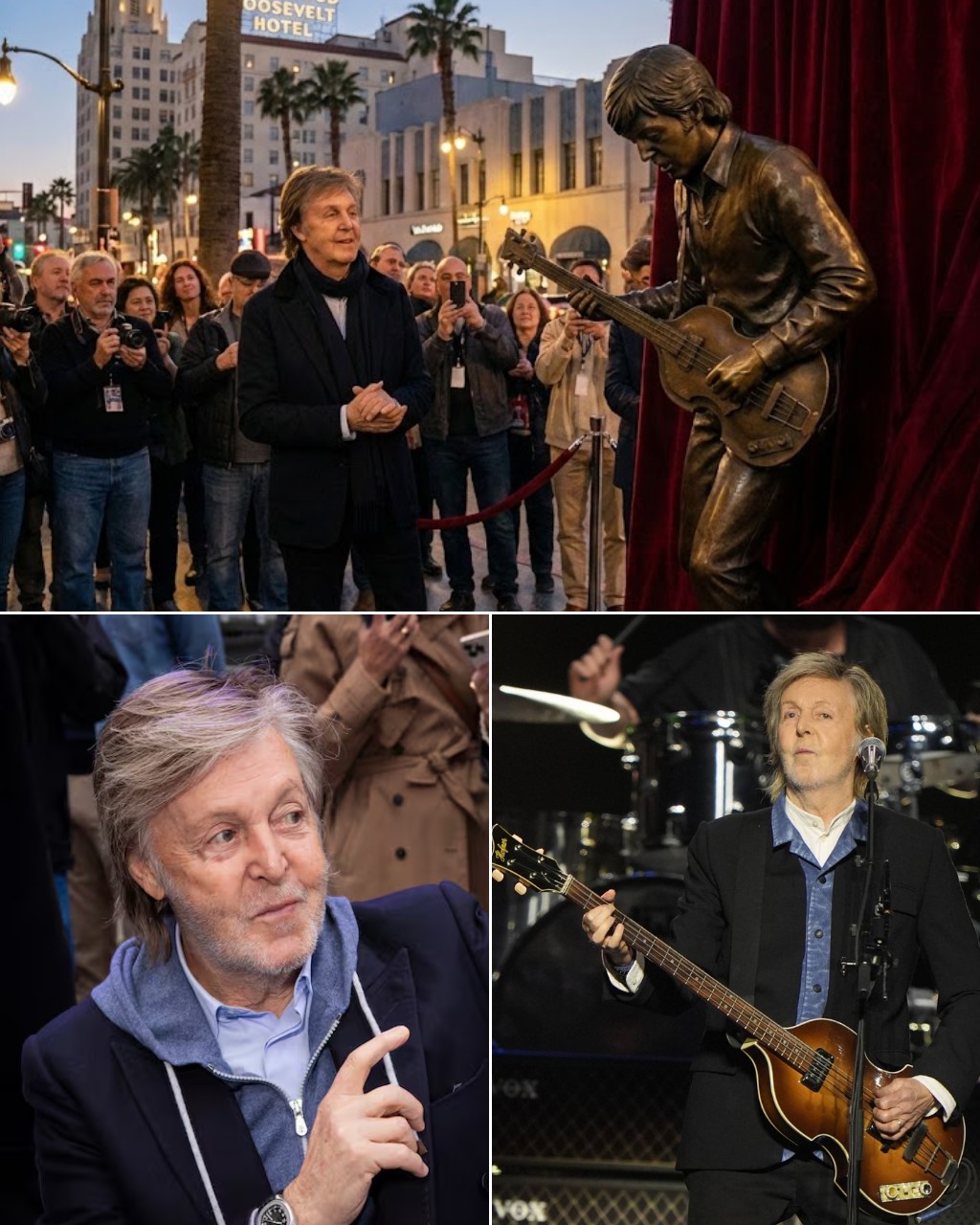 It wasn’t an unveiling. There was no red carpet, no VIP list, no press conference bathed in flashbulbs. One morning, the perpetual current of Hollywood Boulevard simply **slowed**, then pooled around a new, silent inhabitant. A life-size bronze statue of Paul McCartney, captured not in a heroic pose, but in a moment of quiet connection: head slightly tilted, hands resting on his iconic Höfner bass as if he’d just finished a song and was listening to the echo.