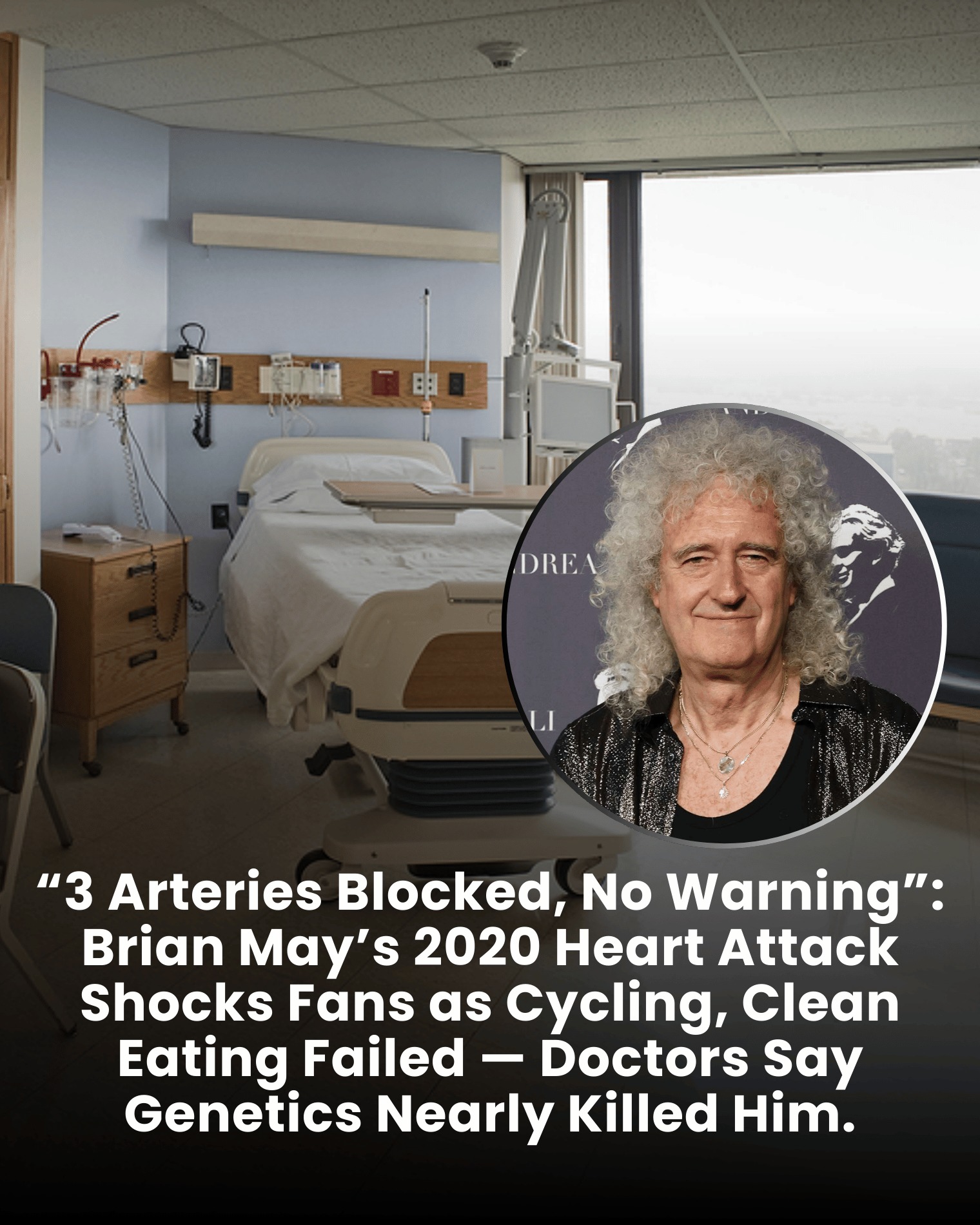 In 2020, the image of Brian May—rock legend, dedicated cyclist, and advocate for healthy living—was shattered by a silent, internal reality. Despite a lifestyle many would envy, with a clean diet and a daily, punishing 30-mile cycling regimen, May found himself on an operating table, fighting for his life. The diagnosis was as brutal as it was unexpected: **three coronary arteries were almost completely blocked.** The very engine of his vitality was moments from stalling, betrayed not by lifestyle, but by lineage.