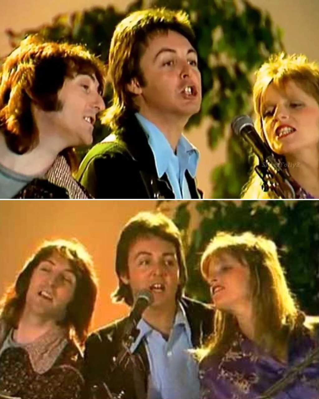 Paul, central but not dominant, cradled his bass, his eyes often closed, leaning into the song’s effortless groove. Linda, beside him at the keyboards, offered not just harmonies but a palpable, steadying presence—her smile quiet, her contributions woven into the song’s fabric, essential but never showy. Denny Laine, the loyal lieutenant and perfect musical complement, provided the texture and colour that completed the sound, his loyalty and talent creating a triangle of mutual respect.