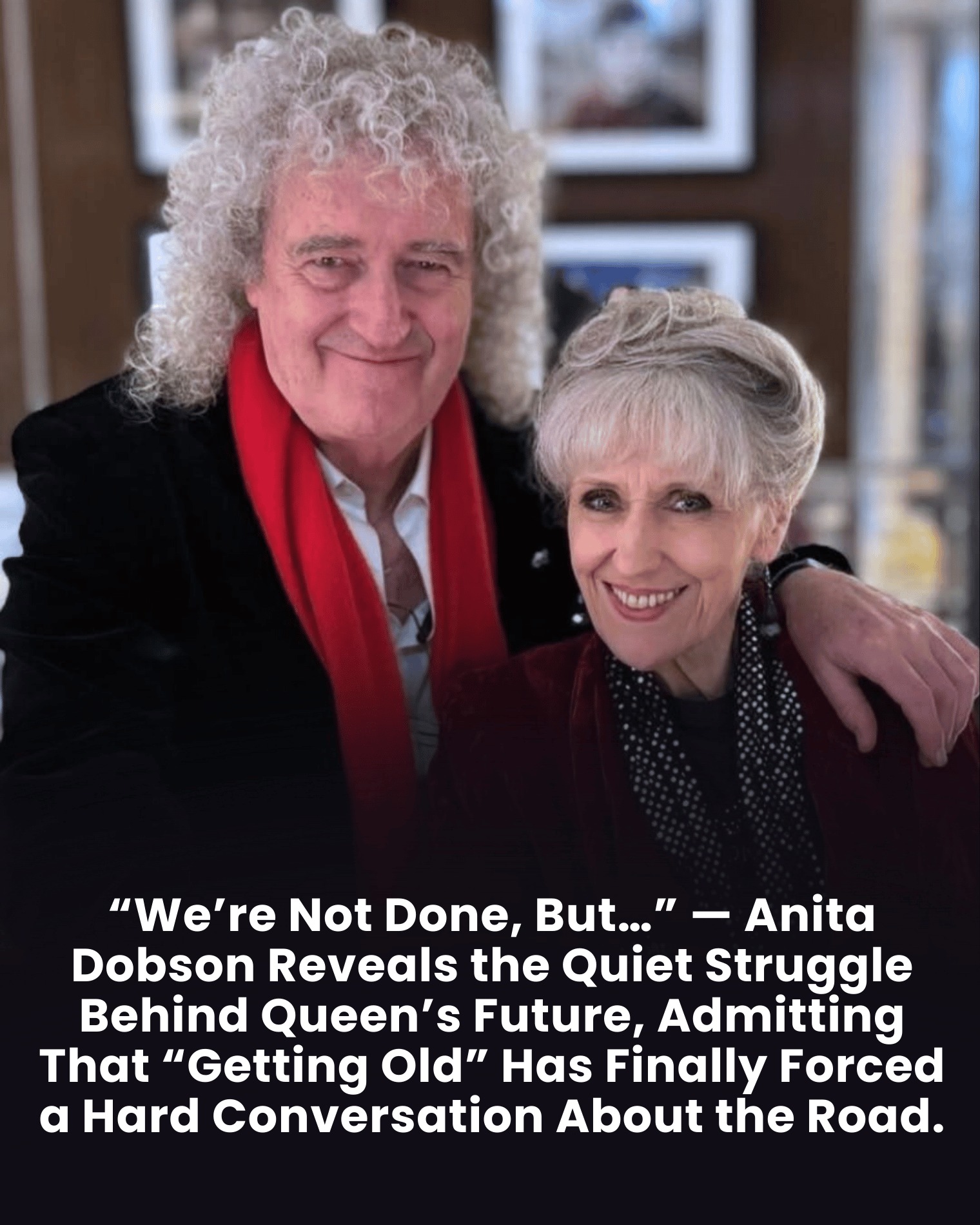 In a rare, unguarded moment away from the roar of stadiums and the sheen of spotlights, a quiet truth about Queen’s future has been spoken—not by a band member, but by the woman who shares its quietest hours. Anita Dobson, the actress and wife of guitarist Brian May, has offered a poignant glimpse behind the defiant curtain of “The Show Must Go On,” revealing the human realities that are quietly reshaping what comes next.