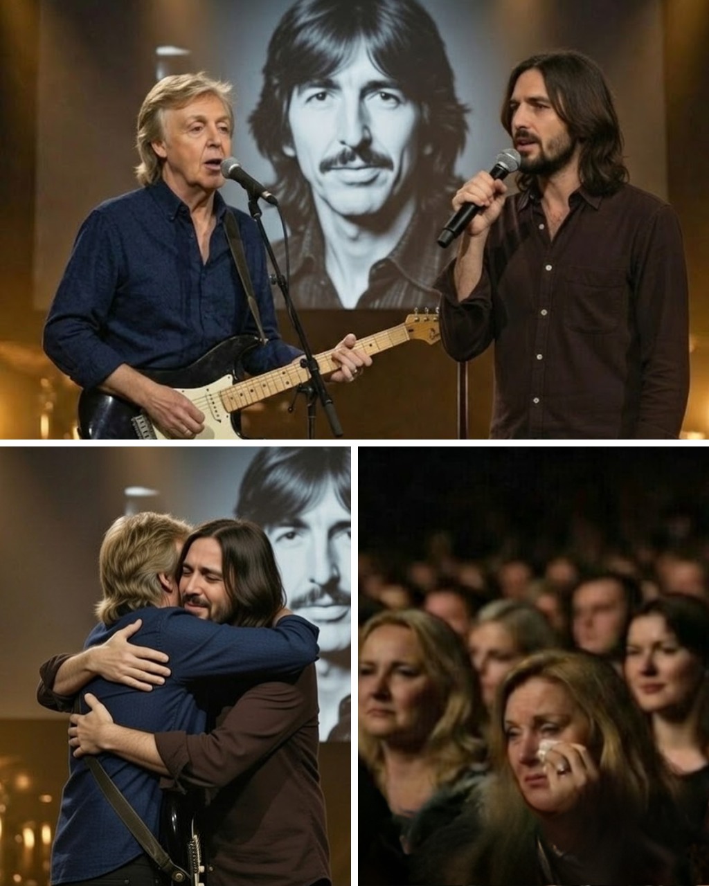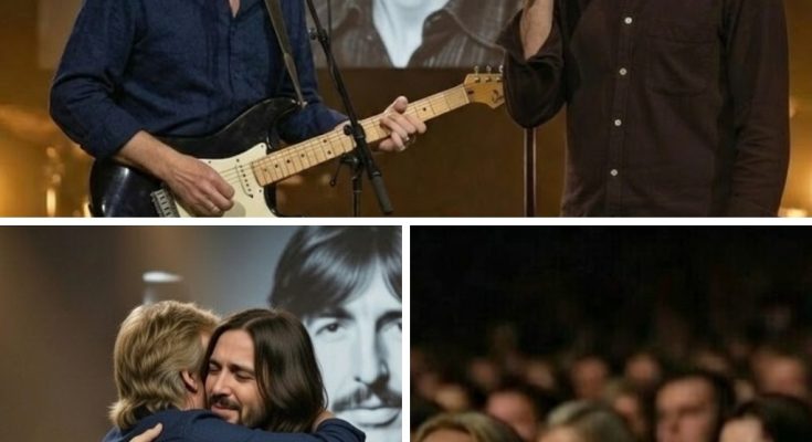 They sang together — Paul’s voice weathered but warm, Dhani’s carrying echoes of someone the world will never stop missing. The harmony was imperfect in ways that made it perfect. Real. Alive.