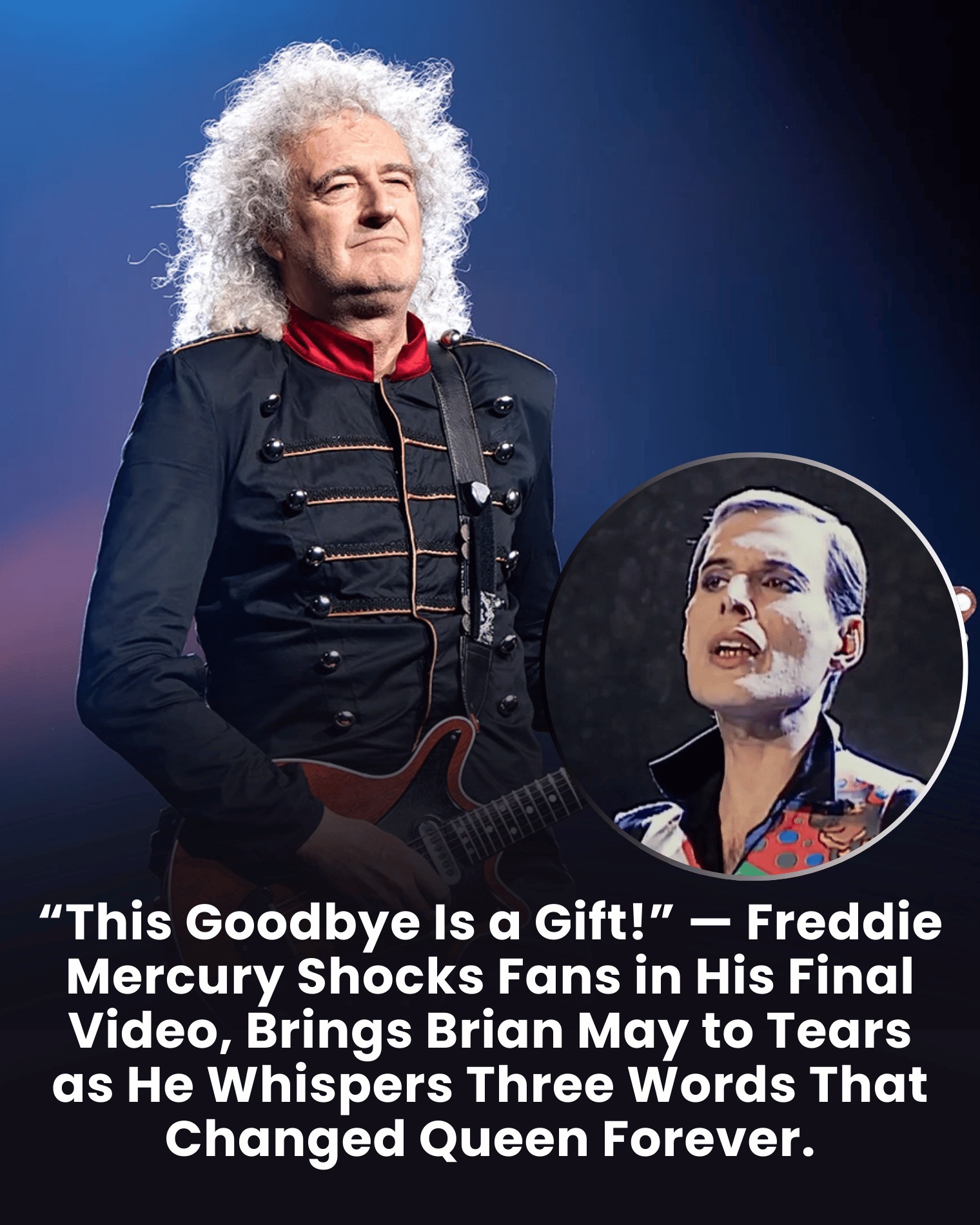 His gaze found Brian May—his comrade, his brother, the man who had stood beside him through every triumph and turmoil. Freddie walked toward him slowly, deliberately, each step a triumph of will over a failing body. He placed a hand on Brian’s shoulder, pulled him close, and whispered three words into his ear.
