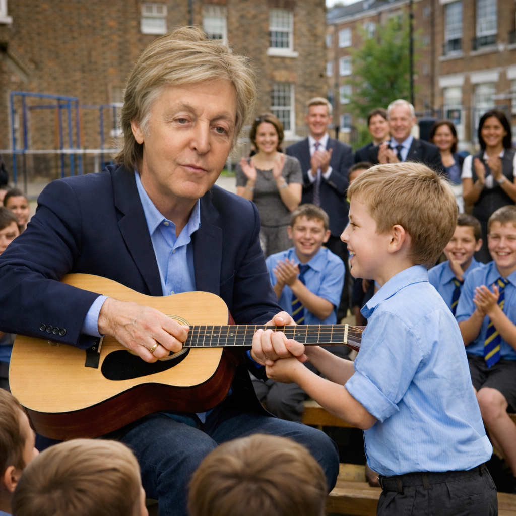 “A Legendary Moment in a London Schoolyard: Paul McCartney’s Heartwarming Guitar Gift That Sparked Joy, Inspiration, and a Love for Music Among Young Students”