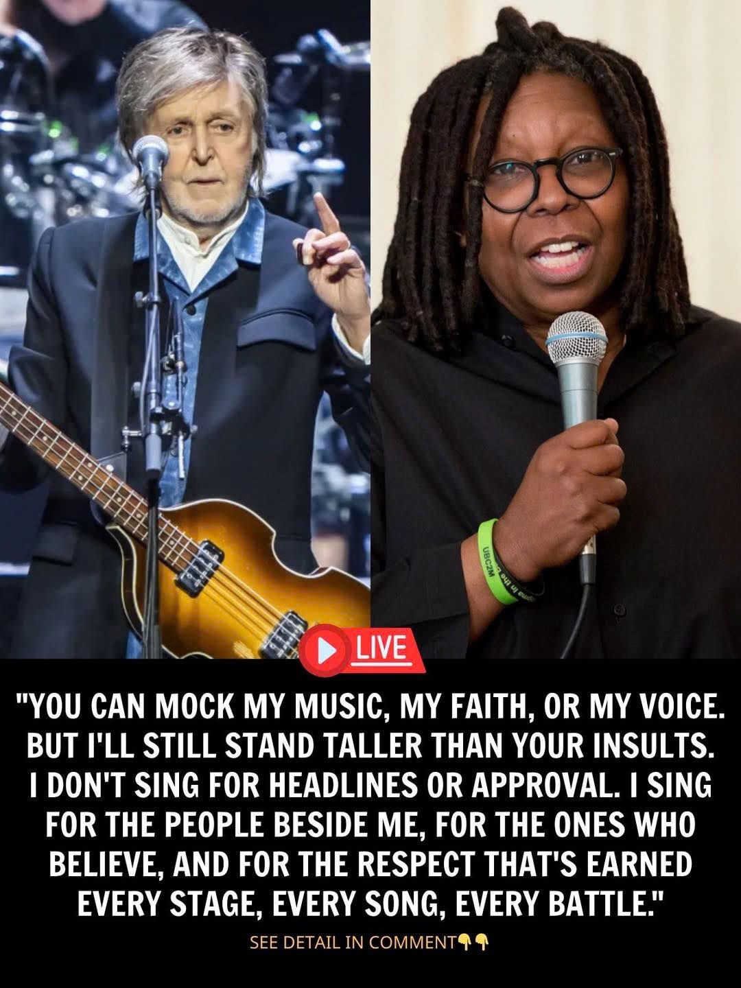 The words hit like a lightning strike. Whoopi Goldberg’s offhand jab seemed set to ignite tension — until Paul McCartney, live on air, met the camera with a subtle, knowing smile.