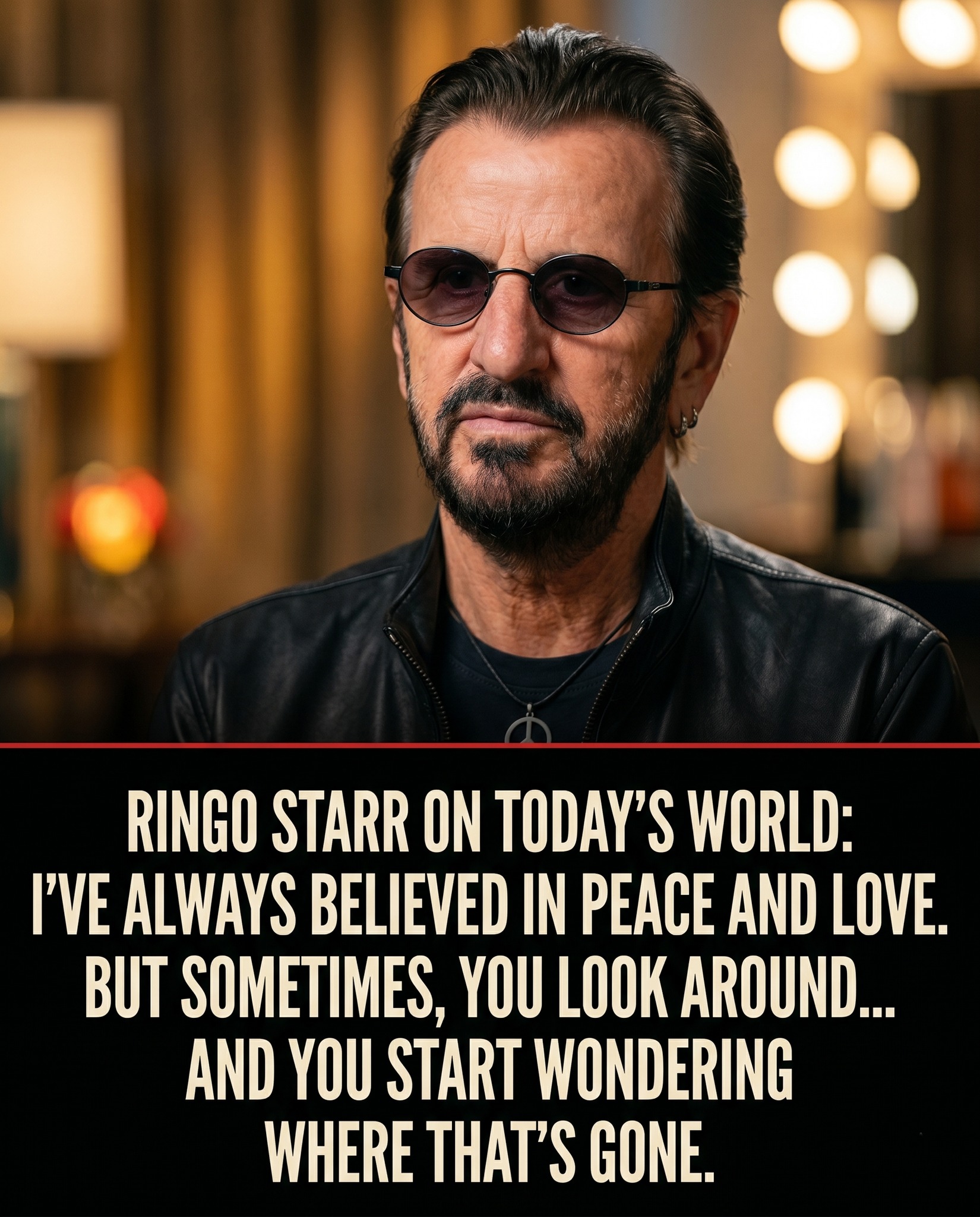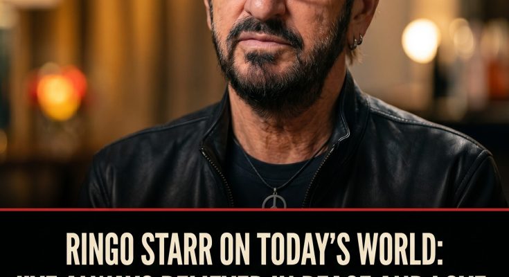 The moment came during a brief interview, casual in tone, nothing that seemed like a planned statement. The journalist asked about the state of the world — rising tensions, division, the sense that something has shifted. Ringo paused. He doesn’t usually pause. He shrugged, adjusted his glasses, and then spoke.