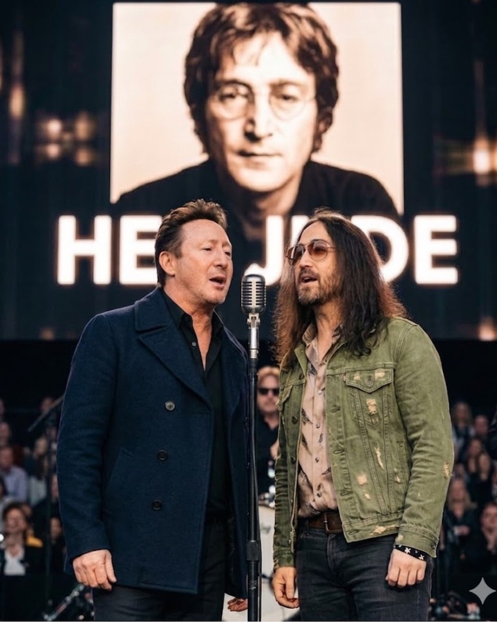 Under a quiet wash of light, Julian and Sean Lennon stood side by side, not to perform, but to heal the fractures of history. “Hey Jude” — written by Paul McCartney to steady Julian during a family crisis — returned not as a chart-topper, but as a profound conversation between brothers.