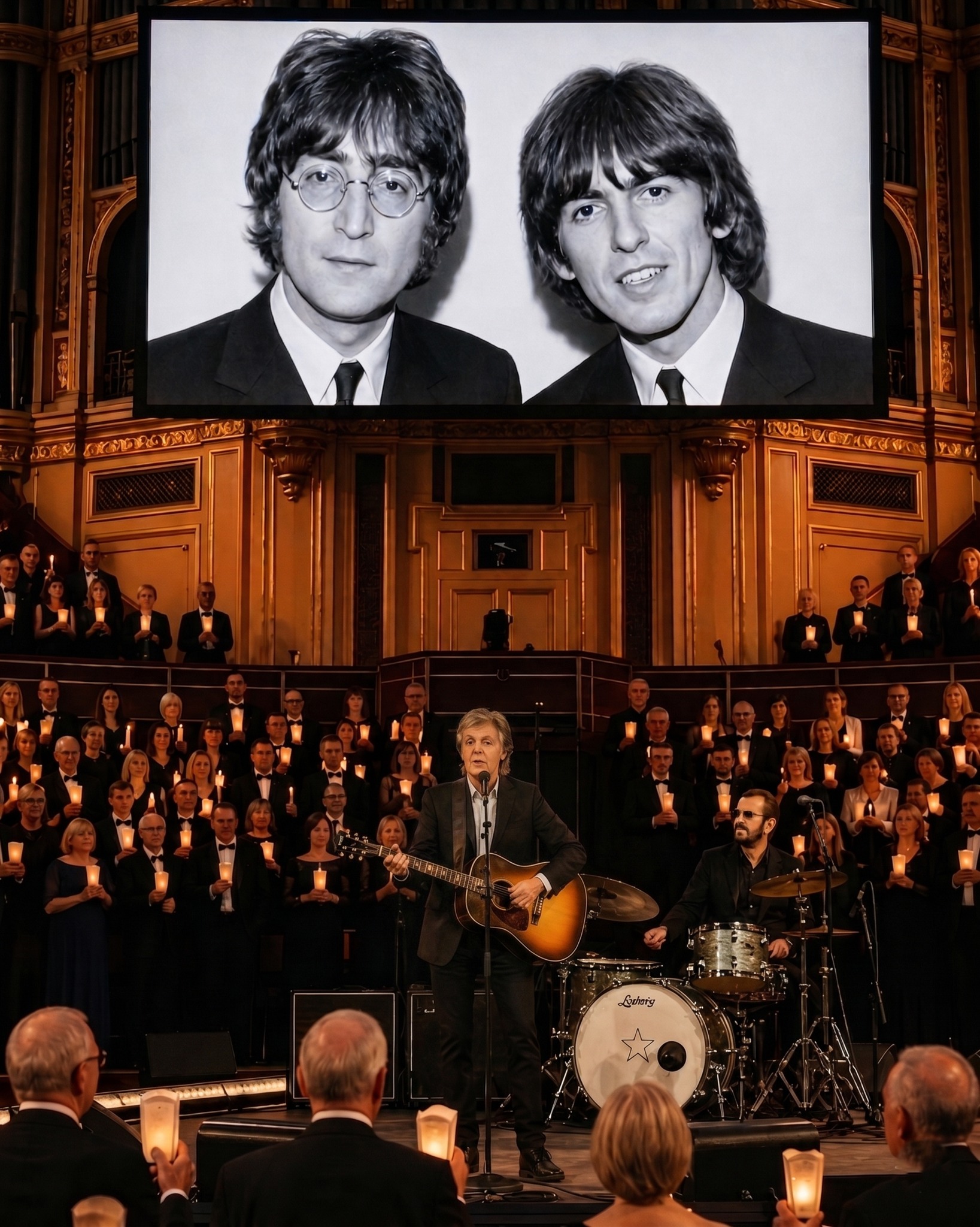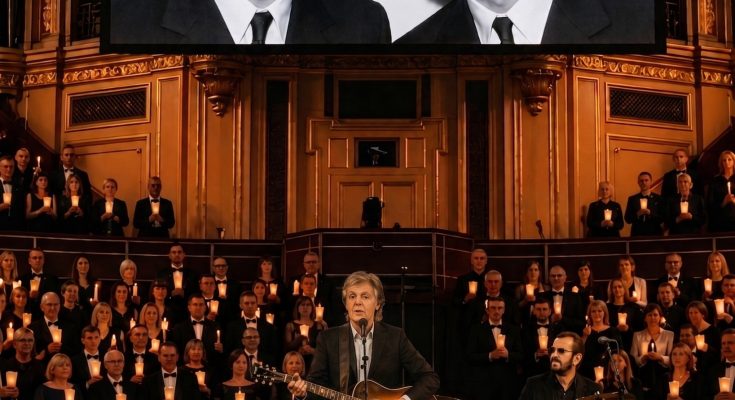 McCartney sat at the piano, his voice weathered but unmistakable. Starr sat behind the drum kit, his playing as steady as ever, every fill placed exactly where it had always been placed. Between them, an empty space where two others should have stood. No one mentioned it. No one needed to.